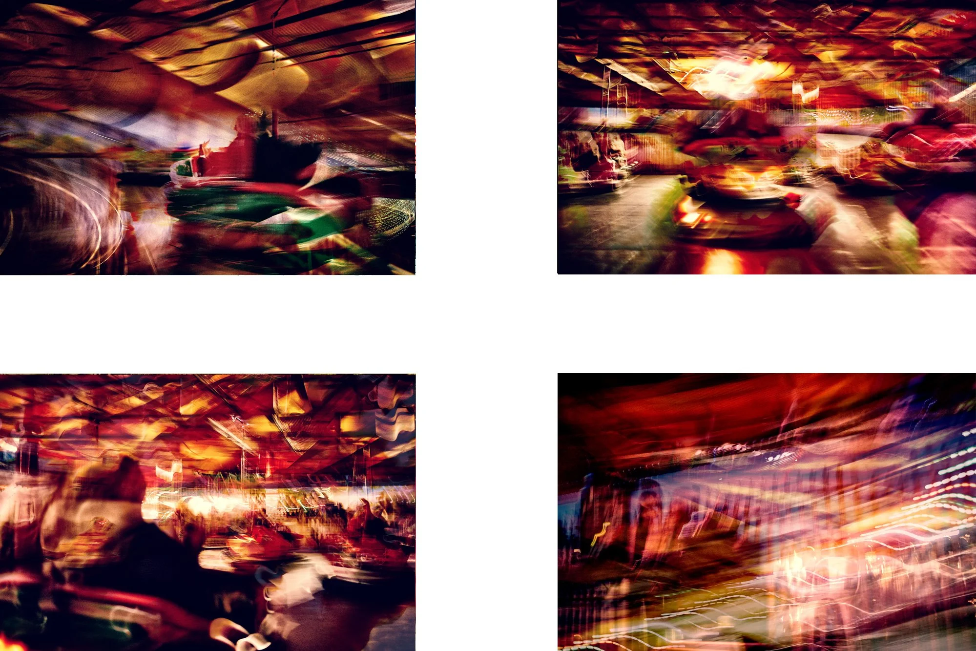 The photographs are made through an acceptance of instability. Movement and colour are used to register the fleeting nature of the experience itself. What is recorded is not the event, but the condition of perception, momentarily disorienting the viewer.